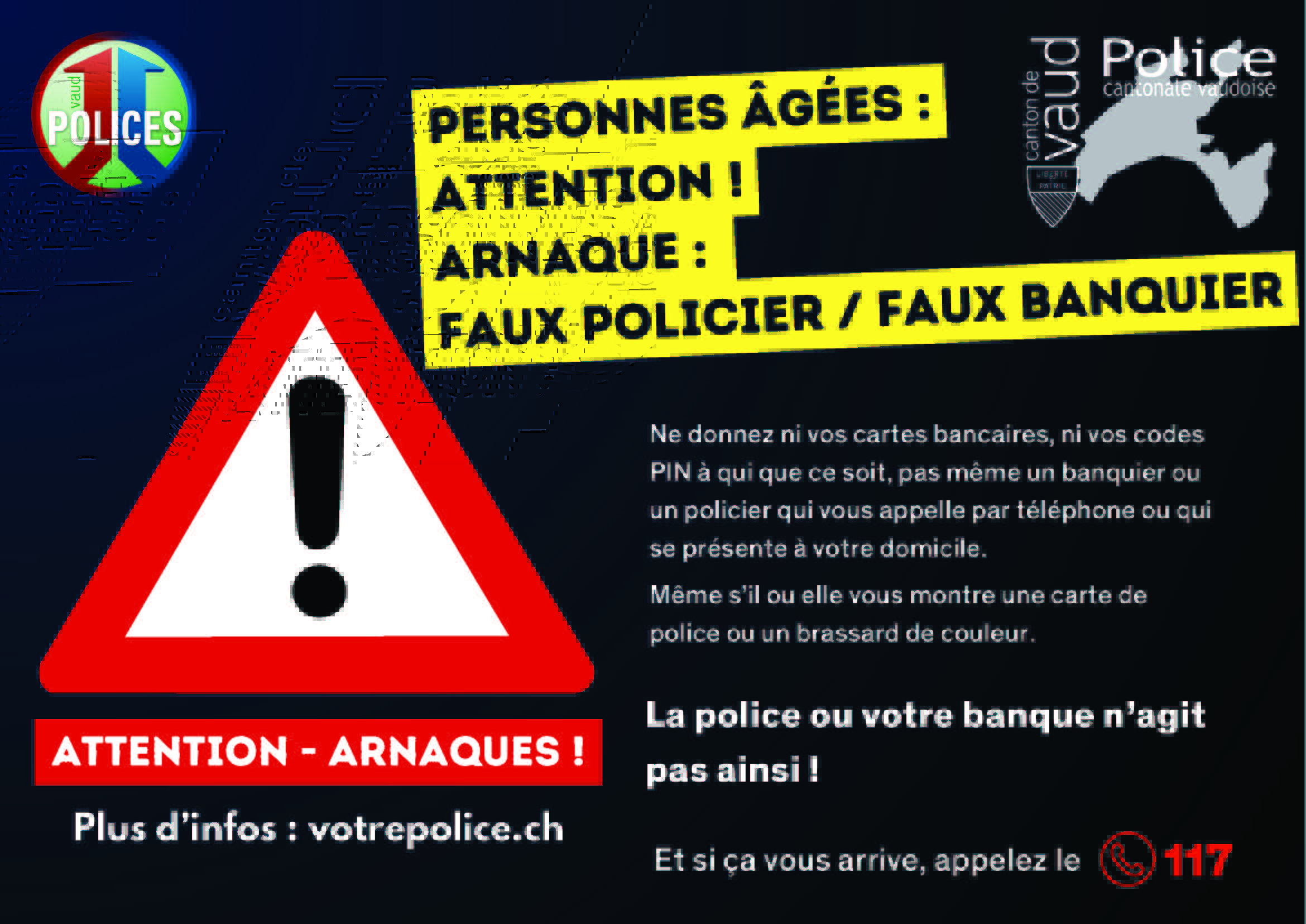Pour obtenir davantage d’informations, vous pouvez contacter votre administration communale ou le poste de police le plus proche. Toutes les informations utiles sur www.votrepolice.ch